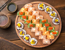 Лосось копченый, мидии,сливочный сыр, икра масаго