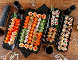 Ролл в креветке со сливочным сыром, огурцом и икрой масаго,